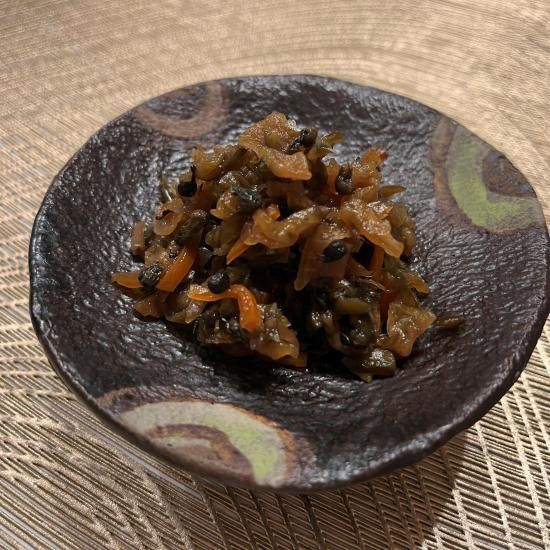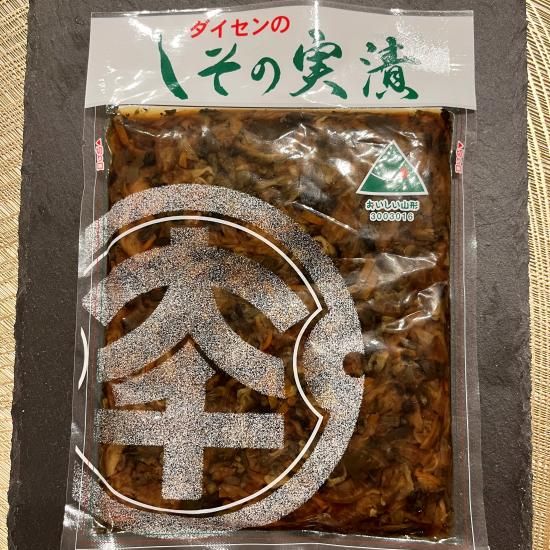 しその実を、刻んだ大根やきゅうりなどと一緒に秘伝のタレに漬け込みました。